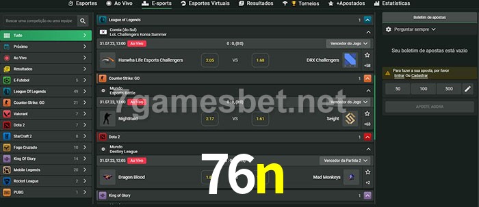 O 76n oferece uma grande seleção de opções de apostas em e-sports com probabilidades competitivas